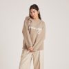 Alpaca yarn jacket Boxy, oversized fit Round-neck design Front pockets Gold engraved logo tab to pocket