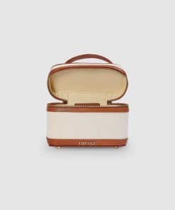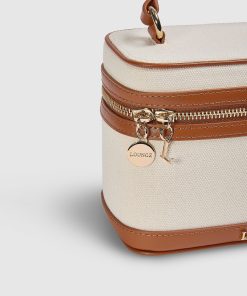 Feminine box bag Combination of luxury heavyweight canvas and smooth tan leather Raised metal logo branding to front Handheld strap Removable shoulder strap Double zip with branded hanging zip pulls Protective studs to base Gold hardware throughout Protective cotton dust bag included |The Al Fresco Collection marks the debut of The Bag Collection – a considered extension of our signature style beyond the body. u003cbru003e Our first-ever bag collection blends Lounge’s signature intimacy with elevated, everyday function, offering refined silhouettes crafted for movement, ease, and expression. Designed to complement the fluid femininity of our ready-to-wear, each piece is a quiet statement: soft, structured, and endlessly wearable. This is Lounge, reimagined – worn your way, wherever the day takes you.