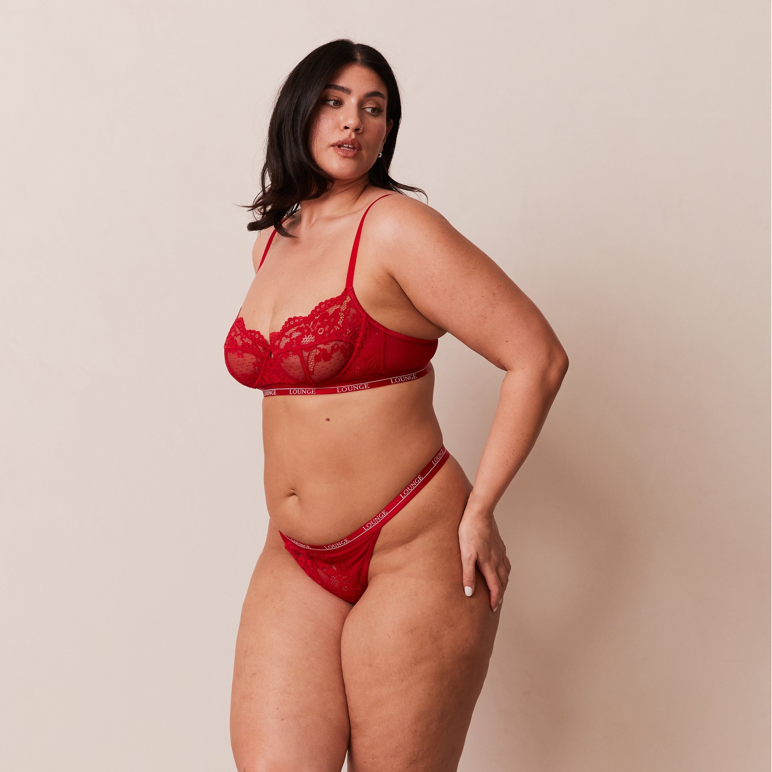 Underwired bra Soft stretch floral lace Hook and eye fastening Adjustable Lounge embossed straps Silver Lounge engraved hardware Lounge branded banners 90% Polyamide, 10% Spandex Bloom brightly in our Blossom Balcony Set. Created with our classic Balcony design in mind, this gorgeous set is super feminine with an all over girly lace, pretty panelling and a flattering shape.