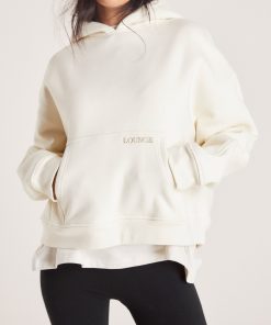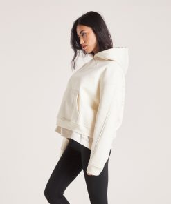 Boxy-fit hoodie Drop-shoulder design Seam details to sleeves and body Kangaroo pocket to front-centre Embroidered logo to kangaroo pocket Ribbed stretch cuff and hem details Hood with seam details Puff print motif Brushed-back inside finish