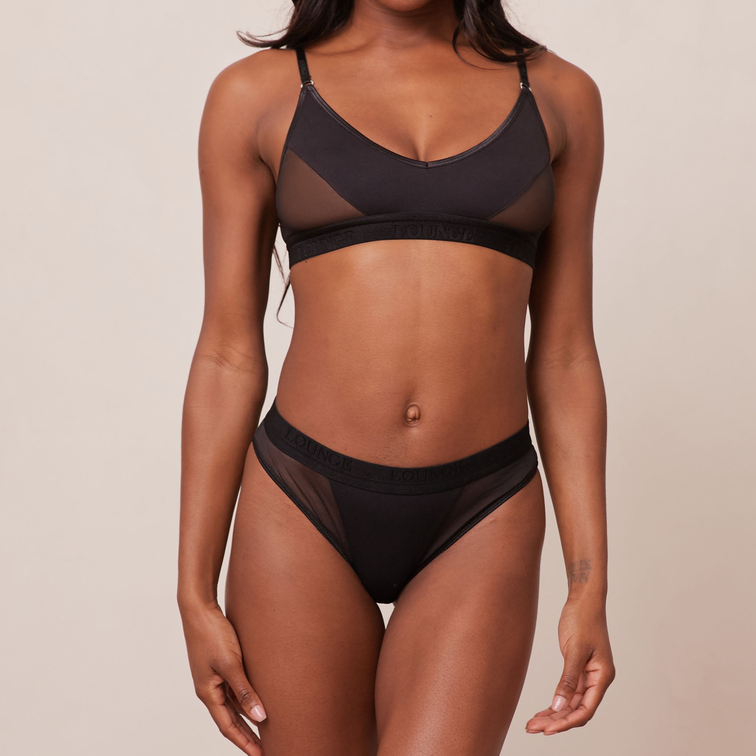Lounge Women’s Contour Mesh Bra & Thong/briefs Set | Black