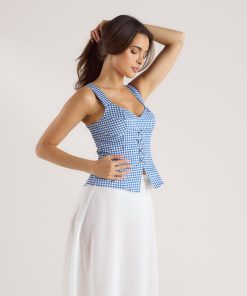 Fully-lined corset top Statement crossover detail to front with eyelets Front split creates a peplum-style silhouette Overbust seams Contoured cup shape to bust Invisible zip fastening to centre-back Hook and eye fastening to back |Get inspired by this curated style guide to create the perfect look|The British Garden Collection celebrates the best of British fashion design. Every piece in this collection pays homage to our roots in lingerie design, offering a whimsical take on trending shapes. Step into a new season with garments that blur the line between lingerie and clothing. This flattering corset top is fully lined for a supportive feel, with a contoured cup that allows for bra-free wear. The dainty front split creates a beautifully feminine hourglass silhouette, with added volume below the waistline.