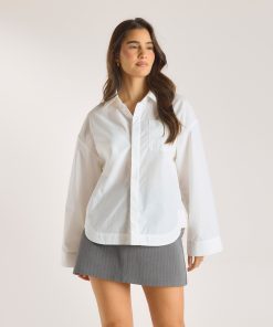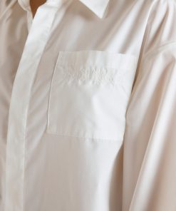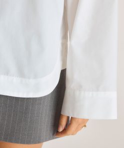 Structured cotton shirt Wide drop-shoulder sleeves Angled cuff opening with engraved buttons Curved hem to front and back with small side panels Front placket to hide buttons Front pocket with chain-stitch logo detailing Yoke to back with pleat detail |The Debut is a collection of tailored clothing designed to bring a flair of modernity to traditional shapes. Discover staple pieces that slot effortlessly into any wardrobe, with each piece crafted for quality, fit, and longevity. Lounge is now worn to be seen. u003c/bru003e Contour fashion makes way for high fashion with the introduction of the Cotton Shirt. This beautifully tailored piece shows a mastery of considered craftsmanship, with subtle branding and accents that are still unmistakably Lounge.