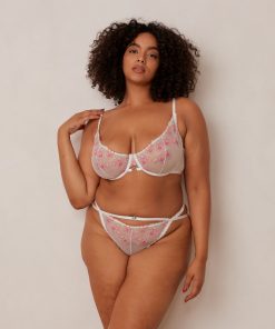 Underwired bra, no padding Two-tone floral embroidery with appliqué detail Statement silver ‘L’ charm Cut out details Decorative double strapping on g-string and brief waist Hook and eye fastening Matching bra and g-string/briefs set Silver Lounge engraved hardware 100% Recycled Polyester Channel your playful side in our Ditsy Embroidered Set. With two-tone floral embroidery and a statement silver ‘L’ charm, this is the perfect style to fill all of your underwear drawer needs.
