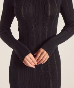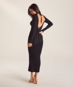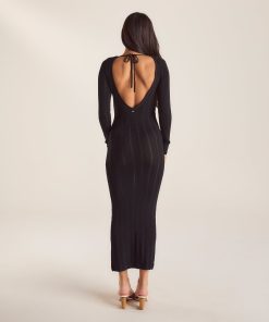 Fitted, scoop-back maxi style Lightweight, sheer knit fabrication Back tie detail Slit to hem Silver tab engraved with Lounge logo This is the dress you need in your suitcase. Whether you style over a bikini or your favourite lingerie set, this dress steals the show every time.