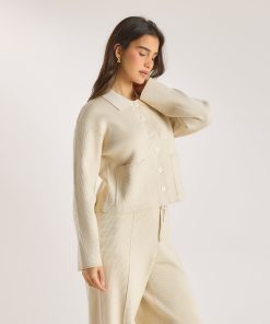 Relaxed-fit knitted shirt with collar Rib knit fabrication 2 pockets to front with hidden embroidered logo branding Mother of Pearl effect iridescent buttons with logo engraving |The Debut is a collection of tailored clothing designed to bring a flair of modernity to traditional shapes. Discover staple pieces that slot effortlessly into any wardrobe, with each piece crafted for quality, fit, and longevity. Lounge is now worn to be seen. u003c/bru003e Contour fashion makes way for high fashion with the introduction of the Knitted Oversized Shirt. This beautifully wearable piece shows a mastery of considered craftsmanship, with subtle branding and accents that are unmistakably Lounge.