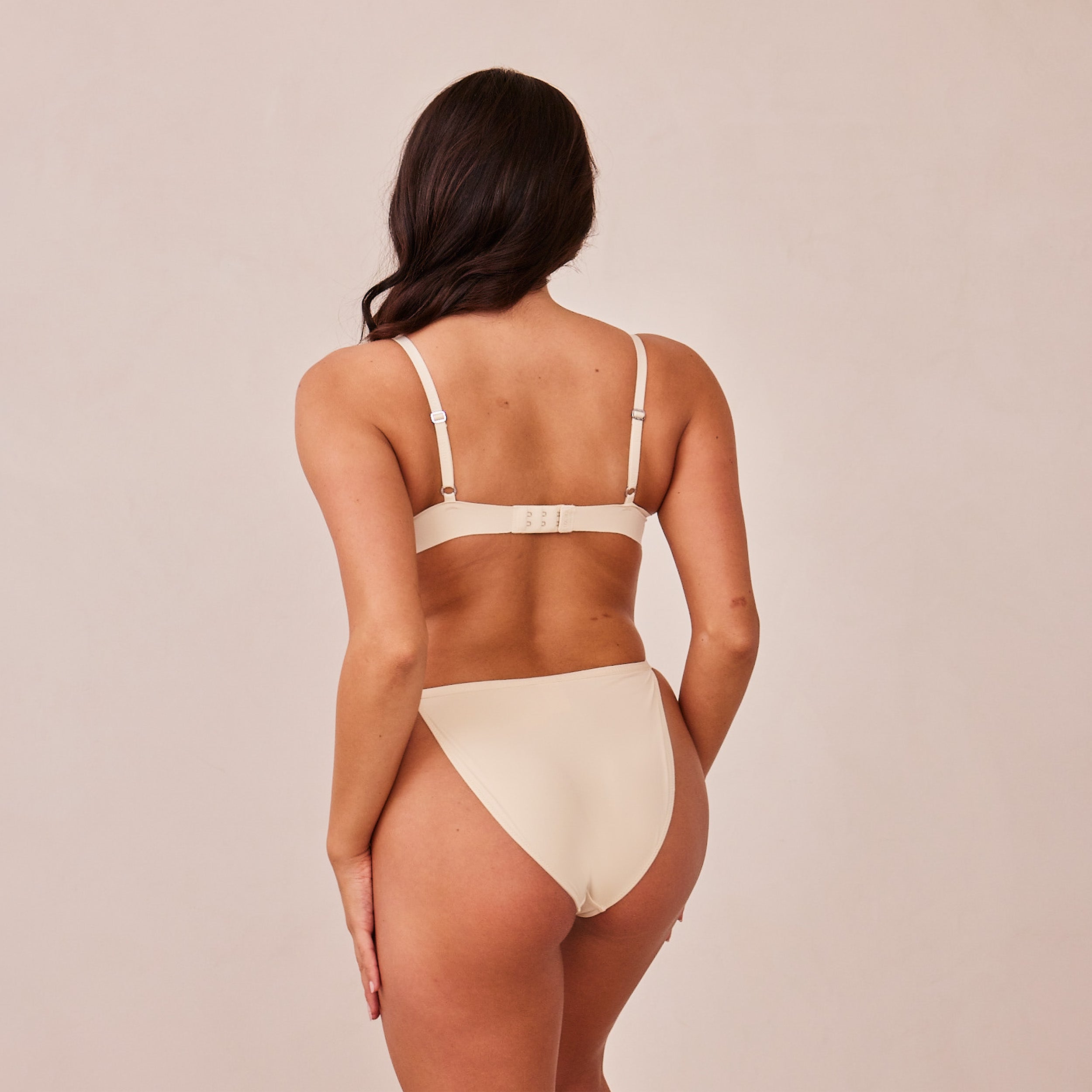 Non-wired bra, foam cup Super soft micro fibre fabrication, with seam free wings Elasticated Lounge branded straps Hook and eye fastening Silver Lounge hardware 79% Recycled Polyamide, 21% Elastane Introducing our Light Non-Wire Plunge Set. Featuring a soft smooth fabric and non-wired foam cup, this set will have you Lounging in comfort all day.