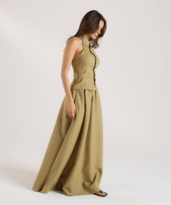 Linen-blend maxi skirt Flat waistband Gold ‘L’ logo branding to left side Invisible zip fastening to side 2 side pockets Gathered waist for a fuller skirt shape |Get inspired by this curated style guide to create the perfect look|The British Garden Collection celebrates the best of British fashion design. Every piece in this collection pays homage to our roots in lingerie design, offering a whimsical take on trending shapes. Step into a new season with garments that blur the line between lingerie and clothing. This beautifully flattering maxi skirt creates effortless volume with its gathered waist and full skirt, while the invisible zip fastening and side pockets provide subtle practicality. A breathable blend of linen fabrication makes this the perfect summer skirt.