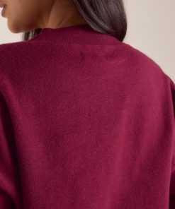Oversized crew-neck jumper Ribbed detailing to neck, hem, and cuffs Contrast-colour logo with bouclé stitch border Soft knit fabrication