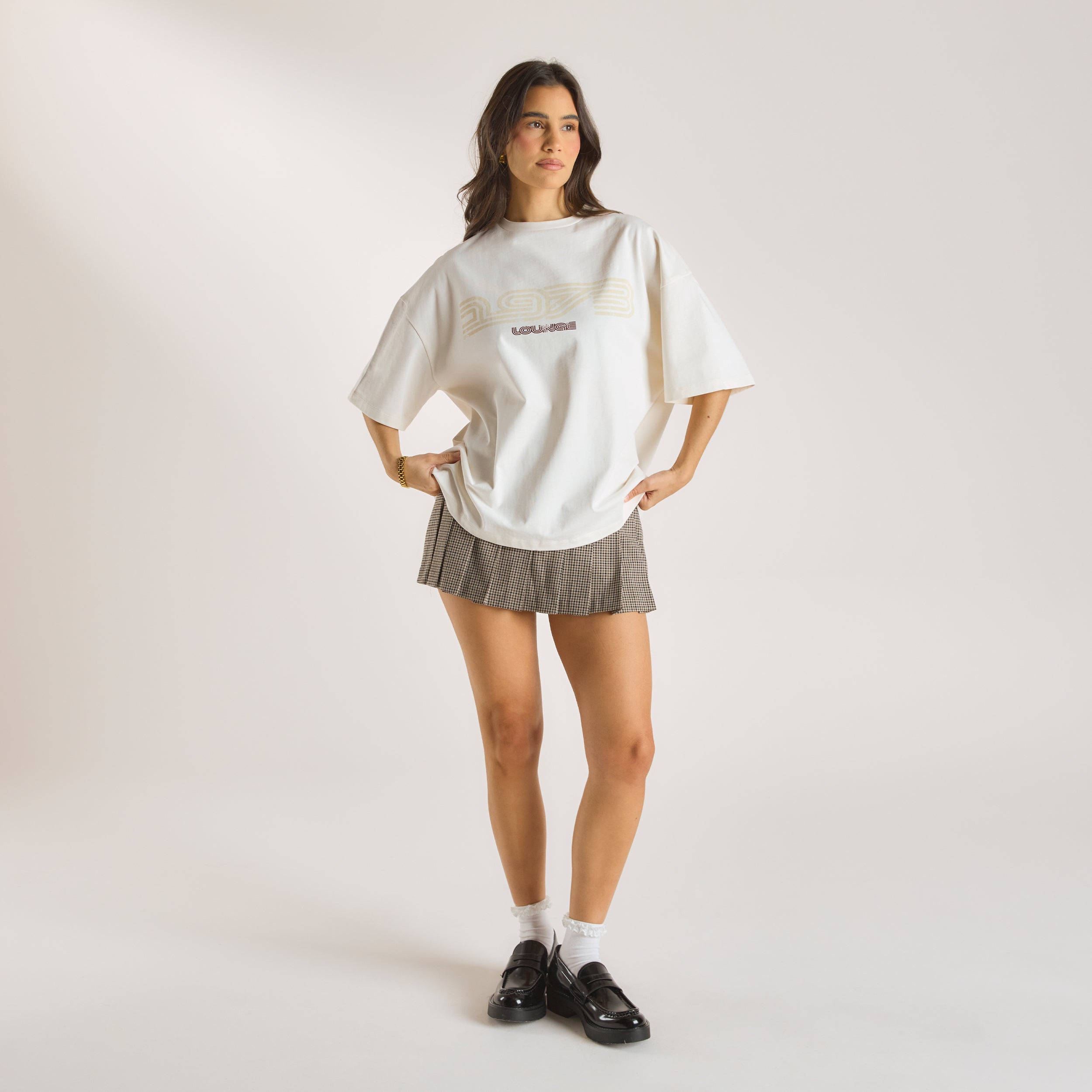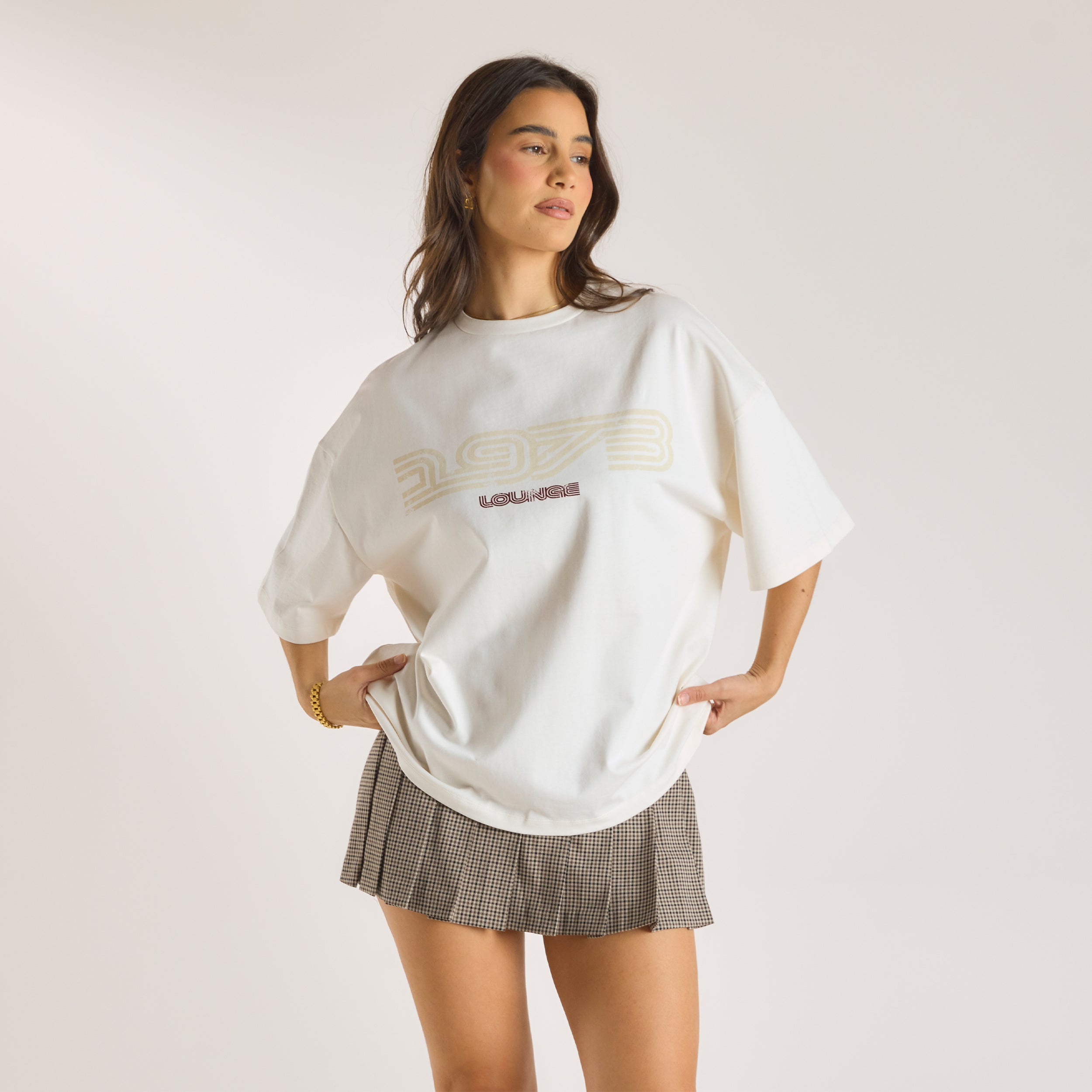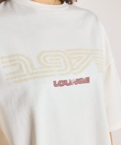 Relaxed, oversized style Soft-stretch cotton fabrication Ribbed neckline Dropped-shoulder style Retro printed logo detailing |The Debut is a collection of tailored clothing designed to bring a flair of modernity to traditional shapes. Discover staple pieces that slot effortlessly into any wardrobe, with each piece crafted for quality, fit, and longevity. Lounge is now worn to be seen. u003c/bru003e Contour fashion makes way for high fashion with the introduction of the Oversized Graphic Tee. This beautifully wearable T-shirt pays homage to the inspiration behind this collection – the forever-iconic seventies fashion – with a bold graphic and printed logo. Albeit retro, this piece is unmistakably Lounge.