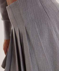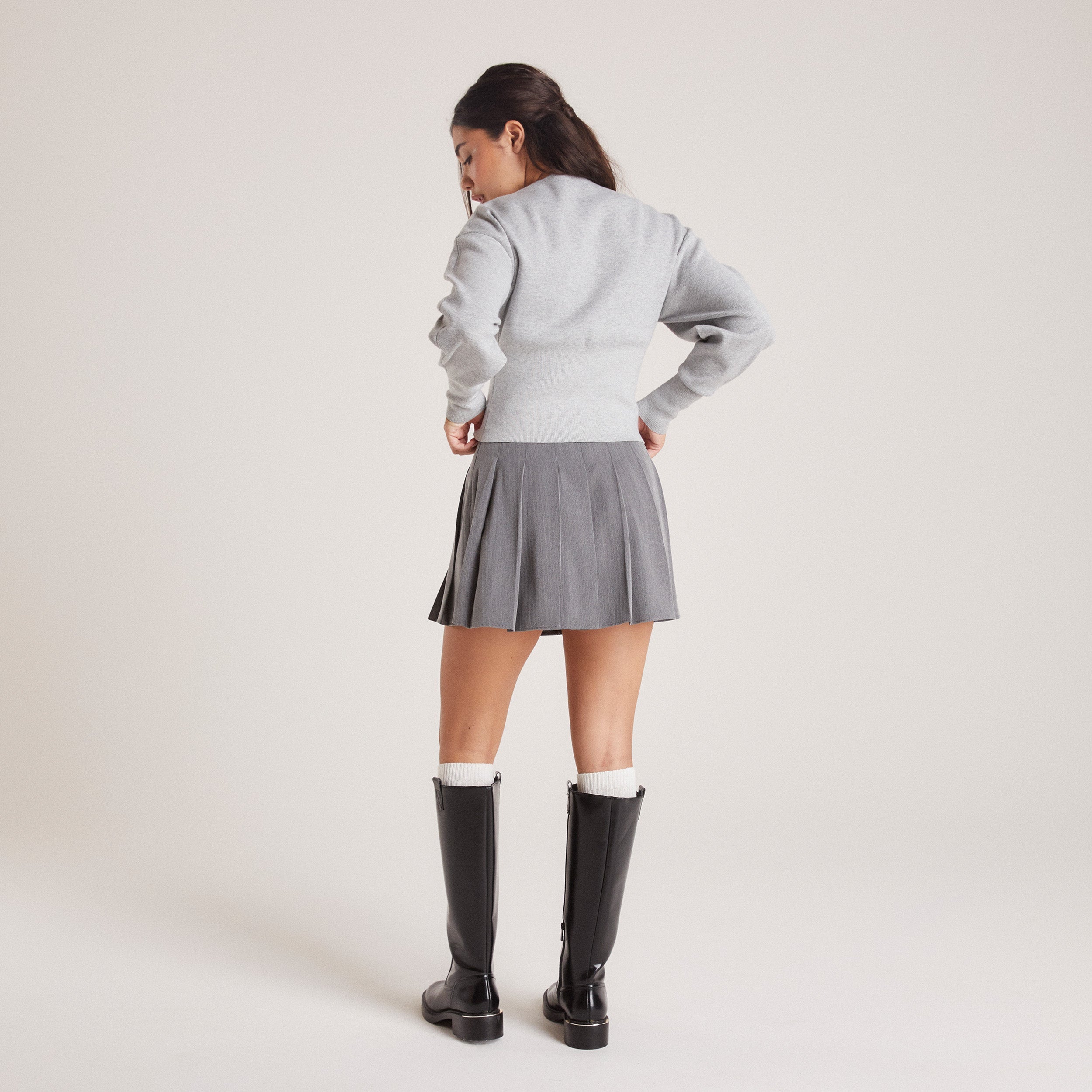 Pleated mini-skirt Invisible side zip Subtle herringbone pattern to fabric Hidden in-seam taping with repeated Lounge logo branding to waist