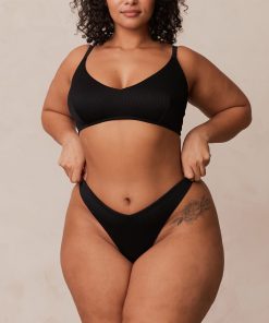 Be the first to review “Lounge Women’s Ribbed Triangle Bra & Thong/briefs Set | Black” Cancel reply