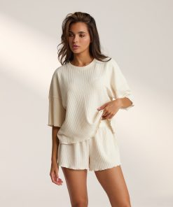 Cami pyjama top with plunging neckline Striped cotton fabrication Functional ruched underbust channel with tie fastening Tie fastening in contrast floral printed fabrication Hook and eye fastening to centre-front for added security Fluted fit from underbust downwards Embroidered ‘L’ lettermark to centre-back |Spend your summer sleeping in with the Bloom u0026 Stripe Collection. Layer up lightly with matching sleepwear, underwear and accessories – this is cosy, coastal perfection. The Bloom u0026 Stripe Cami Pyjama Top has structure to the bust for a secure fit, and fluted lower panels for added comfort. Get ready for the most aesthetic nap of your life.