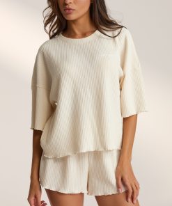 Cami pyjama top with plunging neckline Striped cotton fabrication Functional ruched underbust channel with tie fastening Tie fastening in contrast floral printed fabrication Hook and eye fastening to centre-front for added security Fluted fit from underbust downwards Embroidered ‘L’ lettermark to centre-back |Spend your summer sleeping in with the Bloom u0026 Stripe Collection. Layer up lightly with matching sleepwear, underwear and accessories – this is cosy, coastal perfection. The Bloom u0026 Stripe Cami Pyjama Top has structure to the bust for a secure fit, and fluted lower panels for added comfort. Get ready for the most aesthetic nap of your life.