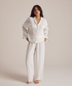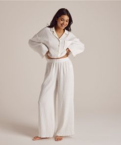 Crinkle-style pajama pants Wide-leg style with ruffled hem Elasticated waistband