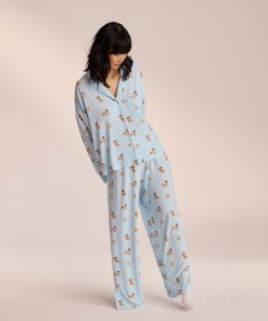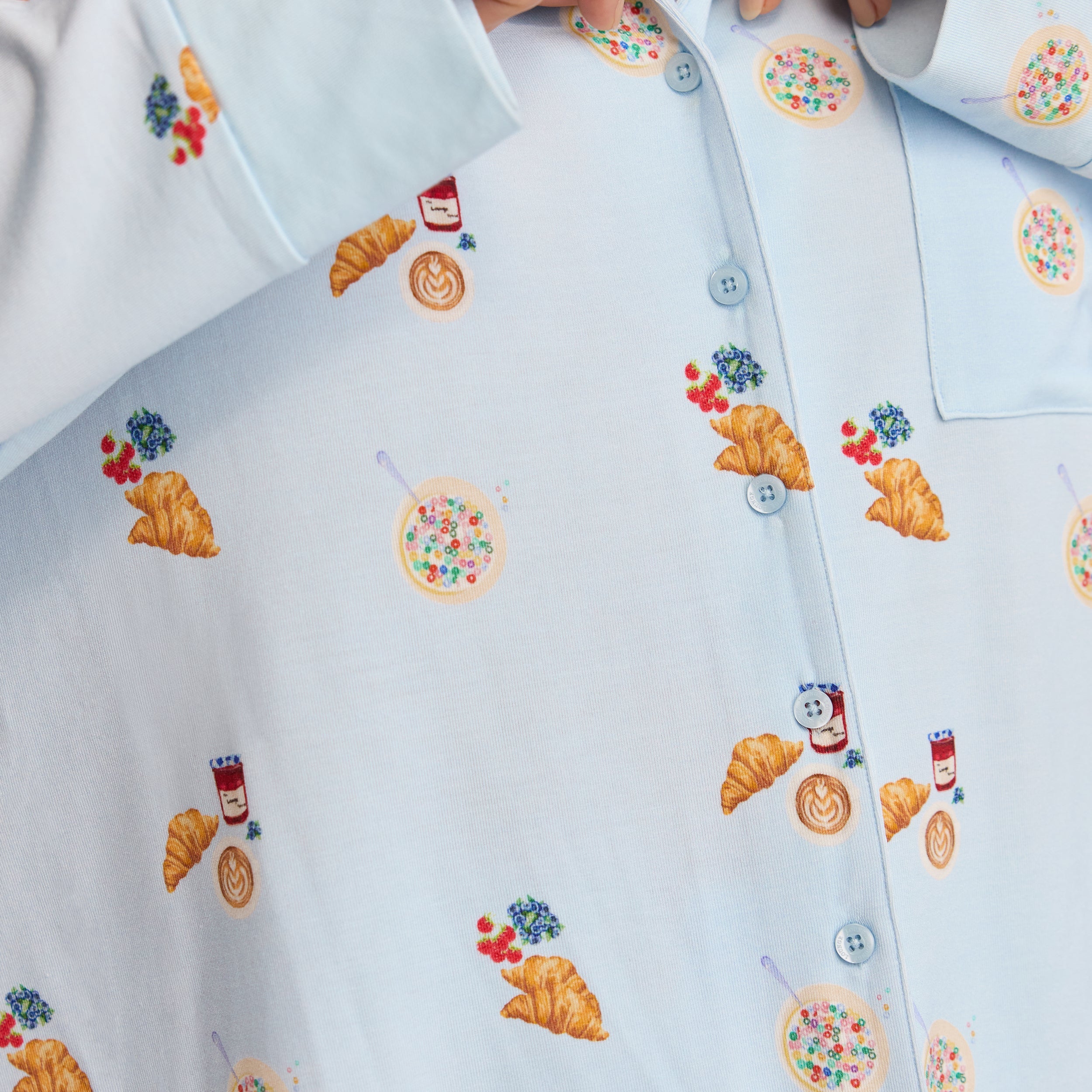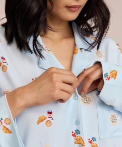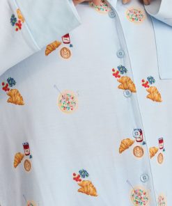 Ultra-soft Pajama shirt made of smooth modal fabric Drop-shoulder design for a relaxed look Soft-stretch fabrication with hand-drawn print Buttons engraved with Lounge logo Relaxed-fit cuffs for a comfortable, unrestricted fit Centre-back seam with small slit to bottom edge Front pocket to chest Woven tab with Lounge logo on front pocket