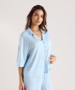 Smooth modal fabrication Drop-shoulder design for a relaxed look Soft-stretch fabrication with hand-drawn print Dyed-to-match button fastening Breathable short sleeves Centre-back seam with small slit to bottom edge Front pocket to chest Woven tab with Lounge logo on front pocket |The Daydream Collection: for endless mornings. Crafted with breathable fabrics and short sleeves, this collection of sleepwear is designed especially for summer. Unwind in style with the Modal Short Sleeve Pyjama Shirt. The hand-drawn print, breathable fabric, and relaxed fit come together to create a piece crafted for pure comfort. Each piece in the Daydream Collection is made with modal, an eco-friendly fabric known for its superior softness and breathability. The moisture-wicking fabric helps to keep you cool and comfortable, so you can enjoy a blissful night’s (or day’s) sleep.