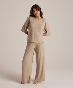 Lightweight oversized waffle fabrication with frilly edging Embroidered Lounge logo Add a touch of luxury to your nightly routine with these beautifully soft pajama pants. The wide-leg fit and elasticated waistband are guaranteed to give you the best night’s sleep of your life.