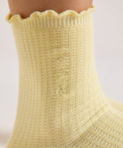 Mid-length style Soft waffle style fabrication Embroidered logo to side of sock Frilled edge |The Spring Daze Collection embodies the turn of a season and the transition to a colourful springtime wardrobe. With wearable pieces in seasonal shades, nothing says ‘spring’ quite like this collection. Match your sleepwear from head to toe with these comfortable waffle socks. Made with a subtle embroidered logo and a soft frilled edge, these socks are the perfect finishing touch to any pastel outfit.