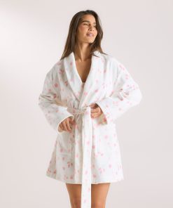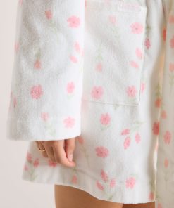 Mid-thigh length robe Printed towelling fabric Tie waist 2 front pockets Printed logo tab to pocket Woven label with Lounge logo |The Spring Daze Collection embodies the turn of a season and the transition to a colourful springtime wardrobe. With wearable pieces in seasonal shades, nothing says ‘spring’ quite like this collection. Bring the spa to your home with the Towelling Bathrobe – an incredbly soft piece with a flattering shorter length.