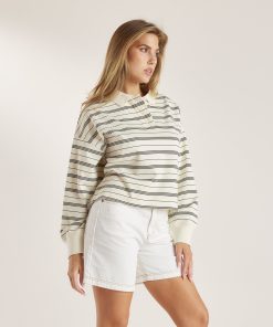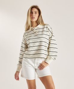 Boxy, oversized fit Button placket to front Dyed-to-match buttons with logo engraving Ribbed collar and cuff detail Yarn-dyed stripe Woven logo badge to chest |The Debut is a collection of tailored clothing designed to bring a flair of modernity to traditional shapes. Discover staple pieces that slot effortlessly into any wardrobe, with each piece crafted for quality, fit, and longevity. Lounge is now worn to be seen. The Striped Rugby Shirt is a casual, chic, wardrobe essential. The relaxed fit and considered branding make this a piece that transitions any wardrobe seamlessly from season to season.