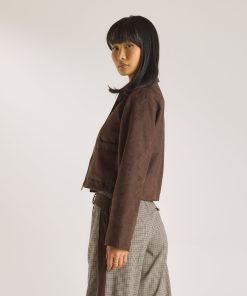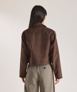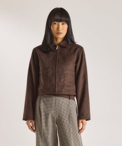 Oversized, boxy-fit faux suede jacket Brushed gold zip detailing with logo engraving Front pockets Turn-back collar Soft inside lining Subtle embossed logo to chest |Get inspired by this curated style guide to create the perfect look|The Debut is a collection of tailored clothing designed to bring a flair of modernity to traditional shapes. Discover staple pieces that slot effortlessly into any wardrobe, with each piece crafted for quality, fit, and longevity. Lounge is now worn to be seen. u003c/bru003e Contour fashion makes way for high fashion with the introduction of the Suede Jacket. This beautifully wearable piece showcases a mastery of considered craftsmanship, with subtle branding and accents that are still unmistakably Lounge.