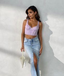 Lounge Women’s Sweet Longline Bra & G-string Set | Lilac Floral
