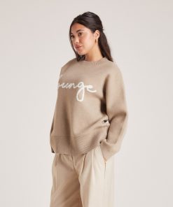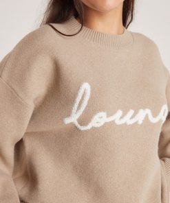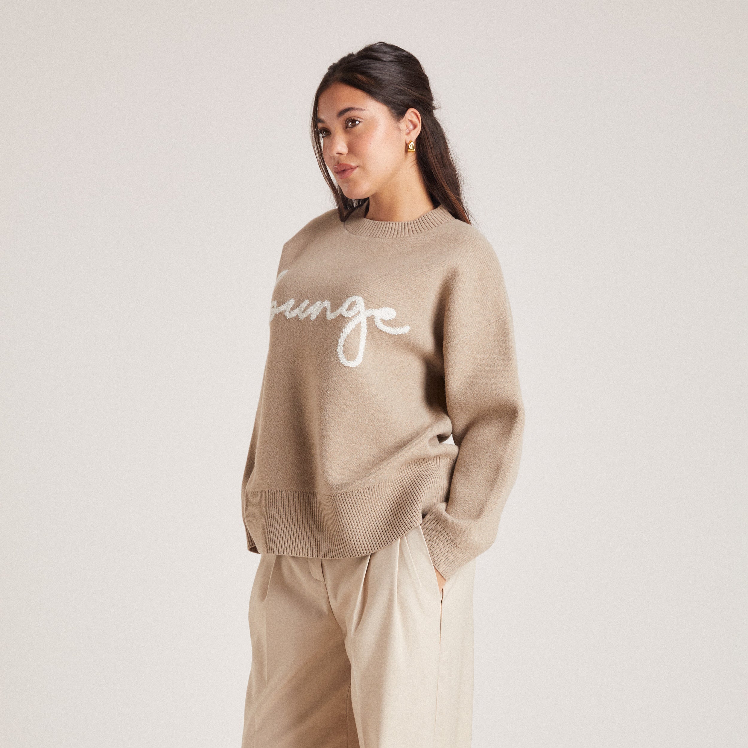 Oversized crew-neck jumper Ribbed detailing to neck, hem, and cuffs Jacquard knit Bouclé stitched handwritten logo to centre-front in contrasting colour